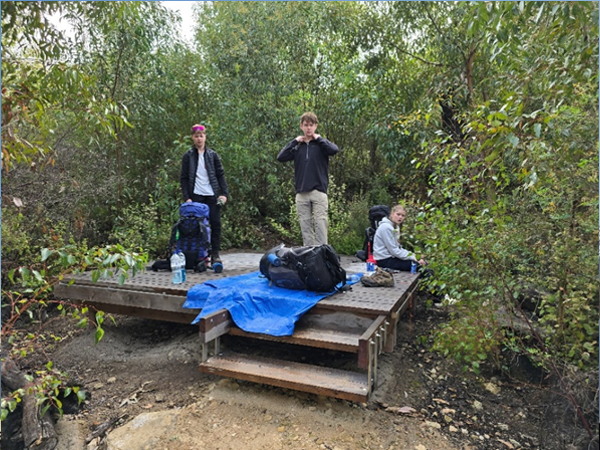 On Day Four, the wind picked up, making conditions harsh. Due to the discomfort from the previous day’s hike, one member stayed behind at a caravan park for a rest day. Meanwhile, Patrol Leader Nic and another member continued the journey, navigating a creek crossing that involved pulling themselves across in a small boat – a fun and unique part of the trail. They reached camp by late afternoon and spent the evening around a campfire, exchanging stories with other hikers.